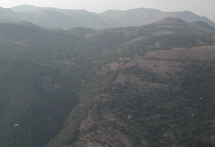 ![]() [ammazza, quanto sò fico...] Polpa mi avverte " Questo è er mejo dè Cassino " infatti è l'unico che parte cò sto ventone e con una naturalezza della serie " Quasi quasi parto all'italiana" Tre secondi dopo sparisce all'orizzonte, mentre gli altri locali senza alcuna "naturalezza", uno dopo l'altro, per fortuna, partono tutti.... Effettivamente adesso è bono, comincio a prepararmi mentre finalmente arrivano tutti gli altri, Viola e Valvola, Elfo e Atac, famiglia Bomarzi, Peppe, Giancarlo, e Nonno con la "sua" busta della zavorra, segno indiscutibile che da un momento all'altro apparirà anche Sfracchia. Sfodero la Kadrega pervaso da un senso misto di soddisfazione, orgoglio e vanità (coattaagine?). Decollo, è bono, è bona, è bella, vola da paura , Sfracchia in radio conferma meschinamente. Mentre gli altri faticano a prendere quota, io fatico a capacitarmi di lei. ![]() [io salgo, loro no...] Mi porta su, veloce, lenta, come e dove voglio, vola per me. ![]() [abbazia di monte cassino] ![]() [caira] Ma la giornata sta finendo, cominciano i primi atterraggi, c'è anche la gara di precisione, discendenze secche in prossimità del prato, qualcuno centra il cerchio, chi con i piedi, chi col culo, chi più volte col culo, ma molti si superano centrando altri prati, pannocchie e l'immancabile albero che nelle manifestazioni di un certo livello non manca mai. ![]() [bersaglio] Al solito, forse per solidarietà, per spirito di gruppo o semplicemente perchè ce lo abbiamo duro, si scende tutti insieme, stavolta ci sono anche molti delta e la precisione diventa quella di evitare collisioni in circuito nonchè sul prato, ma i professionisti preferiscono discutere con un'albero una frasca o una pannocchia pur di evitare processi verbali con i propri simili. Atterro anch'io, ignorando completamente il centro, preso dal divertimento di un circuito incrociato con un delta che preso dalla foga, forse meno divertito, atterra con picchiatone finale e piroetta a 360 sul prato, mentre io, sceso a circa 47 metri dal centro, protesto con i "misuratori" che ritengono inutile prendere la distanza, a loro dire, ininfluente ai fini della classifica, sarò ultimo.... Finalmente Sfracchia decolla per l'agognata planata, aspettava un casco, giochiamo ad "Allieva ed Istruttore", io con modi affabili e tranquillizzanti devo indicarle le manovre e lei con altrettanta precisione deve fare il contrario interpretando inversamente la destra e la sinistra e battendo le gambe ogni volta che dico "mi senti ?", è un gioco fichissimo, peccato vinca lei riuscendo a non virare mai come richiesto. Che giornata....e che Kadrega!!!