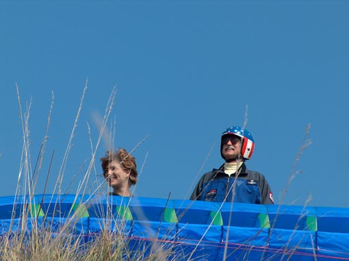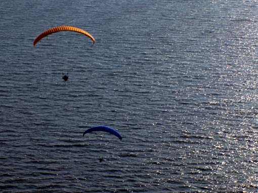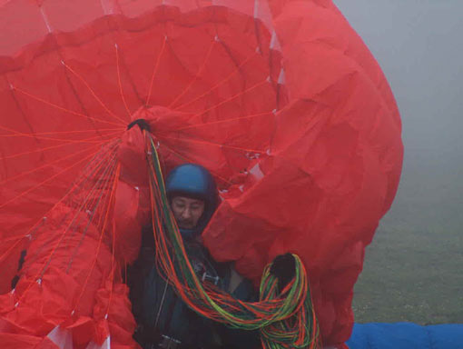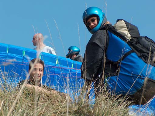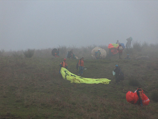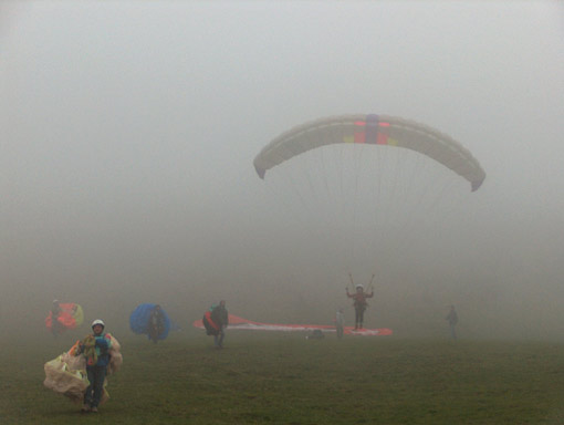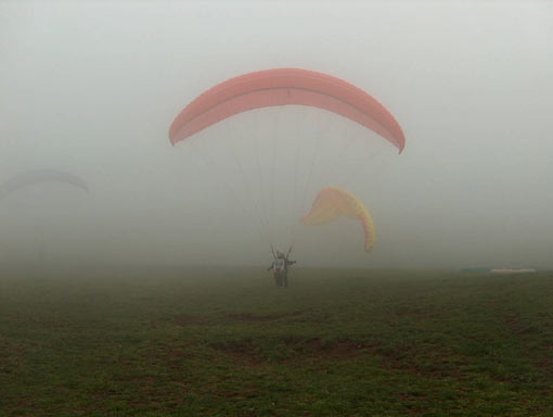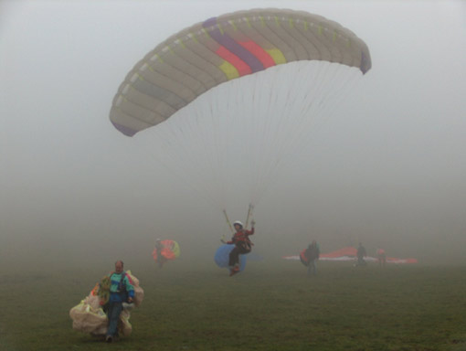 Zeroquattro Zeroquattro Zeroquattro (fog'n'sea) 04 04 2004 [sea open] [fog open] Fog Che sottile e intensa soddisfazione, arrivare in campetto che sembra che stia per diluviare, (con una vela nuova ma senza aspettative), e passare un pomeriggio come quello che abbiamo passato!! [tre rossi] Che splendida sensazione, quella di aver rubato un'altra giornata nonostante le più fosche previsioni! Che giornate, sabato e domenica! Sabato in campetto abbiamo sfidato il tempo (tutti), domenica a Sperlonga abbiamo sfidato il tempo (noi polli). All'una, sabato, in campetto, pioveva ovunque nei dintorni tranne sulle nostre teste, c'era già foschia tutto intorno, tranne sulle nostre teste. [siamosolonoi] Il vento buono, dritto, perfetto, un miracolo. Bbono bono bono. Il primo stacchetto con il nuovo Jazz, intorno solo fruscio e la voce dolce del tagliaerbe: "Vola vola cardellino!", un'emozione indescrivibile. [jazz] [boom] Poi sono arrivati tutti, e via con gli stacchetti, la nebbia è calata sulla collina, ma la voglia di andare su in questo periodo è tanta e aspettavamo, pazienti con le vele impacchettate negli zaini. [flou] Incredibilmente, i cumulacci grigi e piovosi delle colline circostanti non si avvicinavano, mentre il paesaggio intorno si tingeva di una nebbia fatata. [dani + cubo = bipo] Ma quella che si stava addensando sulla nostra collina si è subito diradata, clemente, a dirci andate su, siete perdonati, daaaaai scemi che scherzavo, vi faccio volare, torno più tardi. [lucia: e lascia 'ste bretelle!] Ed è cominciata la girandola di voli, uno dopo l'altro, su e giù su e giù, e abbiamo gioiosamente colorato l'aria bianca di mille vele brillanti. [estasi flou] La giornata si è conclusa con il vento ancora buono ma troppa nebbia, visibilità zero; con un primo volo nei fumi del pendio, che è stato anche l'ultimo della giornata (tuttttttanpiotta) e trenta persone ammassate sulla cima, nella speranza di farsi un altro stacchetto - che dici, Cico, veniamo su? Ma sììììì! Si dirada, si dirada. [tragedy discordante flou] Alcuni hanno tentato di scendere ed aprire e decollare più giù, di correre giù per il pendio più veloce del grigiore, tragedy ha provato come al solito a rimanere lassù a dormire come un elfo, ma la nebbia si era stancata di aspettare noi, e, ignorandoci in modo esplicito, ci ha avvolto di uno stanco velo... -Annatevene a casa che avete volato abbastanza per oggi!!!- [lucia: ennommebastamai_uno flou] [lucia: ennommebastamai_due flou] [annamovia flou] E tutti giù a piedi, di sotto a piegare vele già bagnate, sudati di adrenalina e di allegria. [arriveduar fog fluo flou] Sea "Mi ricordo montagne verdi e le corse di una bambina..."....STACK..ma questa è un'altra storia che potrebbe cominciare con: "Con le pinne, fucile ed occhiali quando il mare è una tavola blu". [sperlonga] Domenica bella storia, bei voli e belli sarete pure voi, la classica domenica di primavera insomma. Mattina ore 11:00 circa: all'appuntamento tragedy è miracolosamente in anticipo su cicognona, che ha mascherato la Cicomobile in un autobus e sta' caricando mezza Roma. Dopo un po' si parte tutti belli, carucci e pettinati, tragedy con bigiotta e collanina, Alessio con smr e dema, costola e costoletta nella SmokingMobile ed io che ho trovato un posto a sedere vicino al finestrino/corridoio centrale sul CicoAutobus. All'arrivo dopo un viaggio passato come le allegre comari di Windsor (ovvero tagliando e cucendo), ci attende un mare che è esattamente dove e come lo avevamo lasciato, ovvero a Spelonga con una bellissima acqua color turques. Saliamo in decollo... [il nome della rosa] [decollo: è bono, è bono] All'arrivo per i neofiti, il solito briefing con i consueti commenti tipo: "...Ma il decollo dov'è?..." "Questa cosa voi la chiamate decollo?" "...Ed io dovrei correre giu' per questo pendio?". Per i polli abilmente mascherati da aquile tonanti, ovverosia i piloti, invece non c'è tempo per parlare: un sole radioso e splendente li attende ed un vento furiero di lieti auspici li invita ad aprire e distendere le ali sul lieve declino...Azzz [cicognona o aquila tonante?] E viaaaaaaa, in aria a rimbalzare da una termica ed un'altra, a girare intorno a colonne invisibili, a togliere la polvere dai pendii. [biposto e spinnaker] [senza parole] Alla fine l'atterraggio sulla spiaggia è solo un momento fra tanti. [...un momento fra tanti...] Poi si risale, bisogna far decollare i polli e far si che anche ruspa, assistentein decollo, abbia il suo volo. [assistente in decollo] E quindi di nuovo in decollo, a cercar di indovinare i volti dietro i caschi e le emozioni di chi sta per muoversi a leggerezza chiamante (licenza cubico-poetica) (la presente licenza cubico-poetica ammepersonalmentemifacagher n.d.r.). ed alla fine.... [atterrando] alla fine tutti hanno volato, e tutti sono rilassati e felici di aver fatto una gita nell'aria. [arriveduar] La sera la tavola è infine il luogo dove gli istinti piu' selvaggi... NON QUELLI SILVIA!... non quelli!... dicevo, gli istinti più o meno selvaggi si quietano, sbafando pigramente fritture di calamari e gamberi. Bella giornata...ne voglio ancora! [arriveduar fluo]