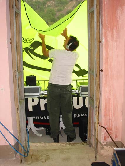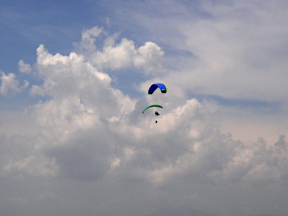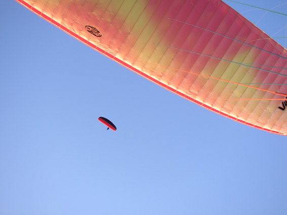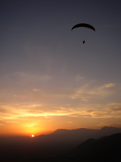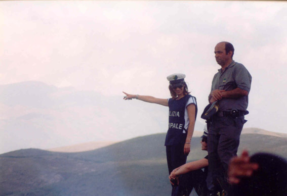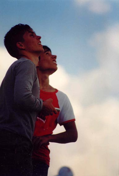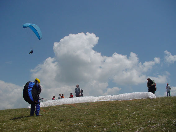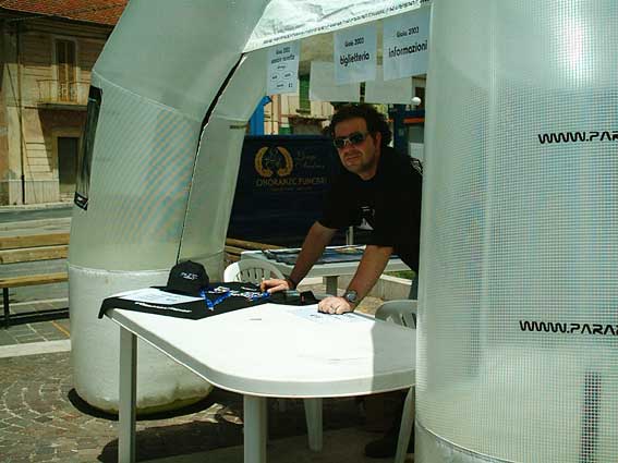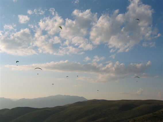 Gioia 2003, The Summer Party! 01 06 2004 [sua maestà: la restituzione di gioia] Inserisco il secondo disco dei sigur-ros nello stereo. Il laser solletica il cd generando un suono suadente ed io sono davanti ad un foglio bianco di notepad, a dover raccontare un'insalata di emozioni racchiusa in un evento. Mi soffermo a guardare immagini digitalizzate di quei giorni e le faccio sposare con quelle inscatolate nella mia memoria. Lascio le dita libere di seguire i pensieri e generare le parole chiave, la ultima forse la più importante di tutte: tribù. La reazione tipica delle persone che mi scoprono volatore è quella di rimanere interdette per un paio di secondi e poi chiedermi :"davvero TU fai parapendio? Certo deve essere bellissimo ma io avrei troppa paura..." e via con le domande canoniche riguardanti emozioni, sicurezza, incoscenza e vento che improvvisamente finisce. A nessuno, però, viene in mente di chiedere se ci sia dell'altro. Nessuno di loro immagina l'importanza del GRUPPO. Il mio cellulare è costellato di appellativi che neanche la migliore fantasia verdoniana sarebbe riuscita a partorire. Ognuno di noi ha saputo guadagnarsi sul campo il nome di battesimo che manterrà a vita anche quando disgraziatamente voglia decidere di abbandonare l'attività per sposarsi. Questa è una delle caratteristiche della nostra tribù, come quella di ritrovarti legato a personaggi lontani anni luce dal tuo tutto. E' un mischione magnifico di persone cementate. Il volo è un fine ma anche un mezzo per viverci l'un l'altro, spesso in maniera completamente indipendente dal resto della nostra vita. GIOIA dei Marsi è, allora, il nostro modo di festeggiare l'estate, di celebrare il volo, ma è soprattutto la festa TRIBALE del nostro gruppo. Nessuno di noi sa spiegare perchè è importante che le cose siano perfette. Nessuno ha un motivo valido per prendere le ferie e andare a sgobbare per 5 faticosissimi giorni, però la data stabilita con largo anticipo si marchia a fuoco nella memoria e i giorni precedenti l'evento sono frenetici quanto quelli della sua esplosione. La festa è nata per caso 4 anni fa. Allora in maniera molto improvvisata ci ritrovammo nel magico luogo che ci ha stregato (e successivamente adottato) forti della sola voglia di stare insieme, delle nostre tende e di una considerevole quantità di bibite ed arrosticini locali. Senza saperlo avevamo dato il via al primo SUMMER PARTY!!! Se è vero che sbagliando si impara (e chi meglio di un parapendista lo sa?) nel corso degli anni abbiamo fatto tesoro delle esperienze e ci siamo guadagnati sul campo il grado di macchina da guerra organizzativa. Il piano di sbarco viene perparato con pedanti riunioni: si discute, si organizza, si telefona, si propone, si fa di tutto perchè la festa a venire sia meglio della precedente. Arrivata finalmente la settimana santa le truppe si dirigono a scaglioni verso il luogo deputato, spinti dal richiamo del corno che nel nostro caso è lo slogan: "ci vediamo su". Arrivati al paese abbandonato si ha la precisa sensazione di trovarsi in mezzo ad un branco di formiche operaie invasate con la passione del volo: tutti hanno qualcosa da fare, c'è SEMPRE qualcosa da fare.... Alla fine il piatto è pronto ad essere gustato e l'inclemente condizione climatica che si presenza a sprazzi non fa che rafforzare la suggestione che il gusto sia ancora più intenso. Ed ecco quindi GIOIA: tre giorni di cielo colorato di vele, di esibizioni acrobatiche, di sconcertante spettacolo della natura offerti da un posto unico, di concerti, mangiate e accampamenti. Un paese che rivive ed esplode quando la sera della festa, accanto alla torre illuminata, comincia lo spettacolo pirotecnico dei fuochi d'artificio. La festa tribale è stata celebrata. Il paese torna a riposare coccolato dalla natura.... tra qualche tempo una nuova data si scolpirà nella nostra mente: Gioia 2004, ci vediamo sù. [si organizza] [in paese] [staff, in piazza] [lampadina] [pronto] [pronto] [ciao nuvoletta] [ma... volano!] [ma... volano!] [ma... volano!] [ma... volano!] [ma... volano!] [ma... volano!] [ma... volano!] [ma... voliamo!] [si... volano!] [michael nesler] [sottosopra!] [parajumper] [acro pilot] [o tempora, o mores...] [dai che sestaprì] [djf sgrullando] [djf suonando] [festa!] [festa!!] [festa!!!] [slow motion] [papaemamma di fuori] [lampadina fulminata] [boide] [giogiò] [gioiagiorgia] [bar] [bum-cià, bum-cià] [bum-cià] [bum-cià] [bum-cià] [bum-cià] [bum-bum] [bum-bum] [ora di andare] [arriveduar] [gioia 2004, ci vediamo sù!]