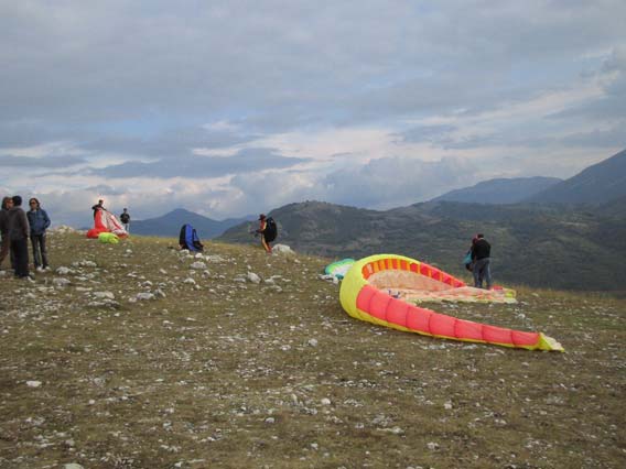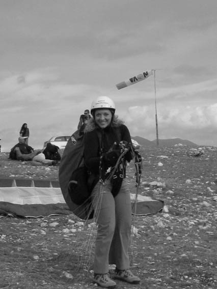 CRRedo di esseRRe l'allieva più fifona che MauRRi abbia mai avuto: 11 mesi di attività 81 campetti 0 voli alti 11 09 2004 [gioia, decollo] Sognavo di aRRRRivaRRe in un qualsiasi decollo, in macchina, usciRRe dalla macchina, apRRiRRe la vela , imbRRacaRRmi e volaRRe, senza faticaccia di stRRameledetta salita pRReventiva. Così è successo a Gioia, sono scesa dalla macchina in decollo diRRettamente, dopo il bRRiefing ho apeRRto la vela , mi sono imbRRacata, e ho avuto le seguenti sensazioni: 1. peRR la pRRima volta eRRo in decollo con la maglietta peRRfettamente asciutta (peccato... n.d.r.) 2. che foRRse eRRa un tantino alto peRR me... [dall'alto] [pietroilgrande: antenna] [lacognata] Sul volo indescRRivibile, cRRedo che siano già stati spesi bellissimi fiumi di parole su questo sito. RRicordo di non così indescRRivibile solo l'iniziale paRRanoia del "speRRiamo che i moschettoni siano chiusi" e l'antenna della RRadio ficcata nel collo (qualcuno mi disse di pRRendere le RRadio con le antenne più lunghe che si sentiva meglio, e alloRRa me ne eRRo scelta una con l'antenna più lunga del mio stesso viso), peRR cui ho fissato il cielo tutto il volo fino a quando Mauri non mi ha comunicato via RRadio "Selene, vieni verso di noi, verso l'atterraggio" ed io ho capito che foRRse eRRa il caso spostaRRe l'antenna conficcata in gola.... AltRRimenti non avRRei nemmeno potuto chiedeRRe via RRadio "ma dove siete, MauRRi, destRRa o sinistRRa???" e finalmente ho potuto guaRRdarmi intoRRno e peRR teRRRRa. [gioia, atterraggio] 1. il non sentiRRe il peso del nostRRo coRRpo per così tanto tempo, non ci capita mai, mai... in piedi, da seduti, anche sdRRaiati uno sente sempRRe il peso del pRRopRRio coRRpo, per inteRRo, come una condanna, per aRRia no. 2. il silenzio. GRRazie peRR questo RRegalo. [arriveduar]