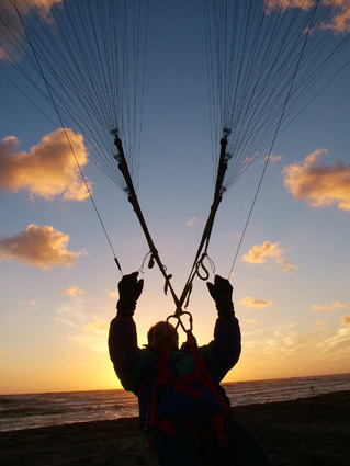 Bliss 02 11 2004 [ostia] Come al solito, in questo periodo, le condizioni meteo non sono dalla nostra. Oramai, alla maggior parte di noi questa cosa rimbalza alquanto, visto che siamo disposti a tentare l'impossibile e ad uscire di casa sotto uno scrosciante temporale per provare a fare qualche gonfiaggio in spiaggia! Lassù qualcuno ci ama.. :o) Sabato 30/10 ci siamo visti ad Ostia ed è stato bellissimo.. Abbiamo dovuto aspettare parecchio prima che salisse un po' di vento, avevamo quasi rinunciato all'idea di poter anche solo aprirla la vela.. Ma sì..due chiacchiere, due risate, il mare, un pomeriggio spensierato on the beach! E invece.. Da dan!!! Eolo decide di mettersi a lavoro e comincia a far spirare una brezza leggera.. Due secondi dopo, eravamo già tutti imbracati e pronti a giocare col vento. Questa esperienza, nella sua semplicità, mi ha colpito.. ho sperimentato un contatto con la vela che mai, prima di allora, avevo sentito così perfetto.. Guardavo la vela muoversi in aria e la percepivo come fosse un'appendice di me, lei mi seguiva ovunque andassi e viceversa. Nonostante stessi già imparando pian piano a controllare la vela, quello che è successo stavolta è stato tutt'altra cosa.. Potrei chiamarla unione, armonia, simbiosi..ma rimarrebbe soltanto una descrizione vuota e formale. E' stato farci l'amore, in un unico corpo, un feeling indescrivibile.. Proprio ieri a Serrone, ho potuto capire quanto questa giornata, avesse portato i suoi frutti. C'era un'altra confidenza con la vela, a cominciare dal decollo fino al momento di appoggiare di nuovo i piedi a terra. Ero lì sostenuta da lei, come sempre, ma mai ho provato tanto chiaramente la sensazione di appartenerle.. di poter volare "insieme" a lei. Estasi. In conclusione, che dire.. Non solo questo weekend che sembrava essere disastroso, ci ha consentito di volare, ma mi ha anche regalato un insegnamento grande, immenso.. Cosa volere di più dalla vita??? ..e che nessuno risponda un LUCANO, ve prego!!! [debora] [contrario] [nadia la sicula] [filippone...] [lacognata] [barbapapà arriveduar] [vadolungo arriveduar] [vadolungo arriveduar2]