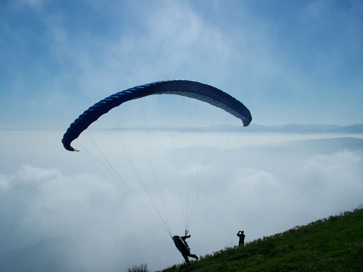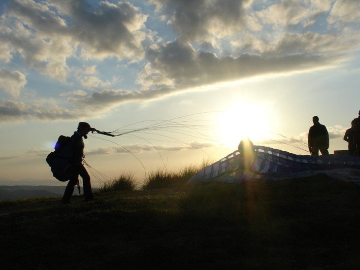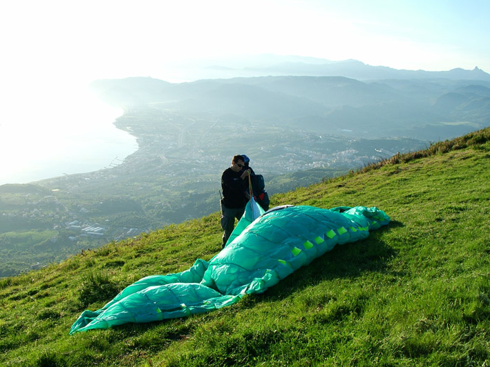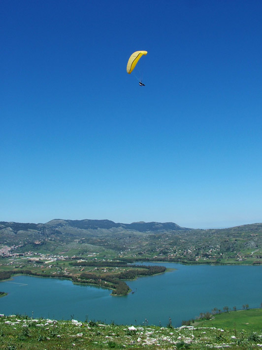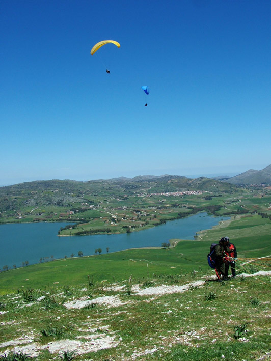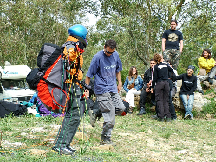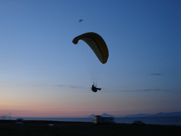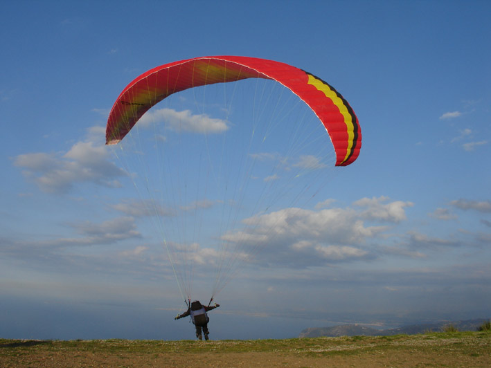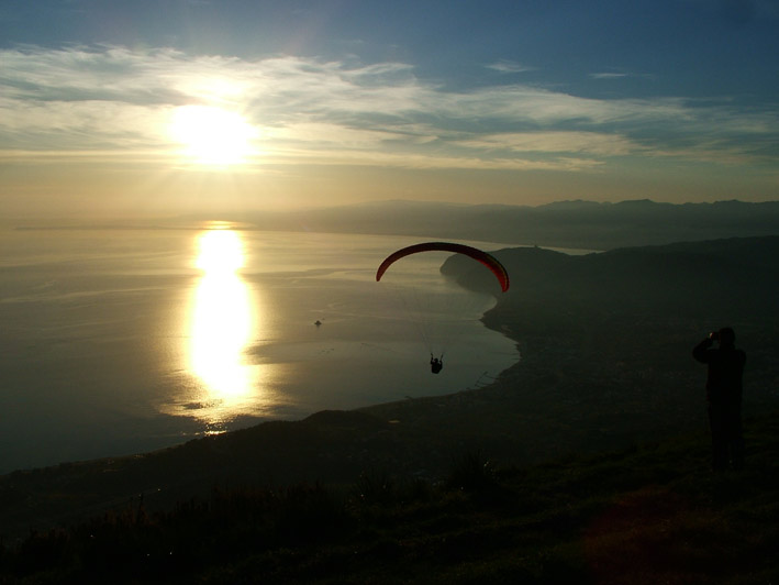 Patti e Ripatti... Sicilia duemilacinque 10 10 2005 Sono scattato sull'attenti e nel giro di pochi giorni e qualche scambio di mail ITA-INDIA è nato quanto trovate allegato. Le parti chiare sono di Polenta, quelle azzurrine di Silvio. NON mi metto a fare polemica sul fatto che probabilmente sarebbe dovuto stare sul sito da mesi come + volte fatto notare... ![]() [siii....] La tua caparbietà, che nelle lande meridionali della penisola chiamano "capa tosta", mi ha permesso di godere della migliore colazione possibile per un parapendista atterrato alle 07:03. La sveglia in decollo a suon di clacson sfiatato (ma ben supportato dalla possente voce di chi si era sobbarcato una intima notte con Picchiatello ):"E'BONOOOOO!!!". L'impatto improvviso con l'aria troppo + fredda di quella che mi coccolava nel sacco a pelo e, soprattutto, con un impertinente spettacolo della natura che accecava per luce e bellezza. Il mio cervello che inviava, sbuffando, informazioni al resto del corpo, filtrate da flussi glicinei e lische vaganti di tonno afrodisiaco. Mi ritrovo ad essere decollato, quasi senza saperlo, e piano piano comincia la mia opera di vero e godurioso risveglio. Sto in mezzo all'aria, le Eolie a sinistra mi fanno l'occhiolino, l'Etna bianco e severo mi sorveglia le spalle. Il vento fresco della mattina mi carezza la faccia ed uno sterminato mare davanti si esibisce in tutti i toni di blu che riesce ad esprimere. Vado a fare il gabbiano, come ad ogni volo sul mare: mi metto sopra all'acqua e guardo davantiiii... L'atterraggio è il meglio che si possa desiderare: vento da Messina (...) e una spiaggia vuota e sterminata riempita da una figura che dovrebbe assomigliare ad un Ruspa sveglio. Arrivi anche tu. Ormai il cervello ha assimilato tutto quanto successo negli scorsi 20 minuti e sta provvedendo, come conseguenza, ad inviare sensazioni benefiche continue al resto del corpo. Mi suggerisce che aggiungendo una colazione idonea si ritroverebbe nella condizione di non poter chiedere altro di meglio... Aspetto che ripieghi e ci dirigiamo verso la strada. E qui la tua esperienza di una estate di stravacchi costringe la mia pigrizia a deviare verso il produttore di colazioni x parapendisti e non verso il bar + vicino. Era QUELLO che ci voleva e la mia materia grigia ti porge i + sentiti ringraziamenti. ... fai il gabbiano, ti metti sopra l'acqua e guardi davanti, a volte.... altre volte, mi pare, ti eserciti guidato in nuove ed eccitanti manovre sull'acqua, incurante del famoso vento da messina -'adriano, com'è il vento in atterraggio?' 'è da messina' 'adriano, io non so dov'è messina' 'ah ho capito. comunque il vento è da messina'-, fiducioso in quanto da me suggerito in decollo, dall'alto della mia esperienza (!!), e soprattutto, credo, dalla legittima aspettativa di granita al caffè con panna e brioche che tutto appiana e tutto cura..... rigorosamente avvolto dallo spesso strato di inversione ma altrettanto rigorosamente filmato..... con adriano scendendo dal decollo che oscillava tra la gioia sincera che gli dava trovarsi finalmente alla guida del parallelepipedo, nella soddisfazione di quello che sembrava il desiderio di una vita -miiiiinchia dalla parte del passeggero nòn c'è la pòrtiera! un còmòdino c'è! ahahahhahahah- e il genuino divertimento per la comunicazione che gli era appena arrivata via radio -minchia!! polenta è partito in autorotaziòne!!! il bagno hai deciso di farlo, quel giorno, per esorcizzare l'accaduto e sfottere un pò il mare che ti ha conosciuto senza effect, o perché a tratti sembrava che fosse arrivata l'estate, in quel lento e godurioso paesiello di mare? con la festa del patrono passata languidi, dopo un paio di voli, a scrutare bellezze sicule, inebriati da una abbondanza quasi paradossale, per quanta era? la sicilia di patti, tu ricordi, perché quest'anno la sicilia è stata patti!!... gli innamorati di patti, ci chiamava adriano, a pochi di noi, come fosse una cosa strana innamorarsi di quel posto, e poi veri e propri amanti di quel posto lo siamo diventati tutti.... tanto da tornarci, dopo la bella serata alle gole - quelle della prima aurea e universale regola di maurilio, quelle che,,,, come sono, di giorno? e per tornare a patti (cosa che in effetti abbiamo fatto appena abbiamo potuto) te lo ricordi il primo giorno, che arrivati in decollo il vento era un pò storto (appena appena), e adriano appena sceso dal camper stizzito per le condizioni, di fronte al panorama mozzafiato delle eolie stagliate sull'azzurro di 800 metri di dislivello, in mezzo ai polli che ululavano estasiati, ha esclamato sincermante stupito: 'minchia io proprio nòn capisco per quale cazzo di mòtivo questi si sòno fissati, con questo pòsto'? 'forse perché come al solito, oltre a non volare, non si capisce neanche dov'è l'atterraggio, adriano?' Le manovre sull'acqua erano il mio modo, da maschio, di attirare l'attenzione sulle esigue rappresentanti del vostro sesso. Ognuno lo ha fatto a modo suo: chi guidava il camper a velocità sconosciute (lasciando pezzi dello stesso in giro per l'isola come tracce di Pollicino), chi ha sradicato un platano con le mani, chi ha fatto comparire improvvisamente un cancello in atterraggio, chi si è fatto 47minuti di bagno in mare con l'acqua calda come un complimento di mm° dopo un decollo, chi si è messo a volare con una vela da competizione nella scia di un areoplano, chi è riuscito a farci mangiare male una sera in Sicilia... Di tutti questi uno solo ha ricevuto una velata proposta, ma si è BEN guardato dall'accettarla, preferendo la nottata con un comodo spuntone nella schiena e dimostando a tutti l'inutilità di tanti sforzi di fronte a tanta virilità!!! Il mestro invece era intorpidito, confuso, smarrito. Deve esserci stato qualcosa in questo viaggio che lo ha turbato... Forse gli inebrianti colori che l'isola si conserva per la primavera e sprigiona senza vergogna, forse il sapore continuato e continuativo dell'alternanza ar