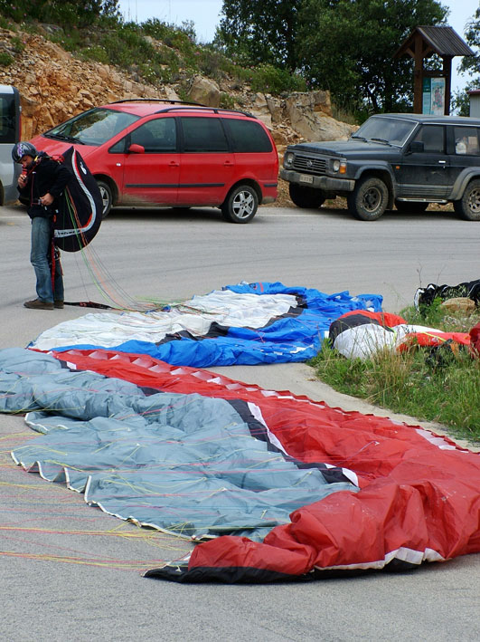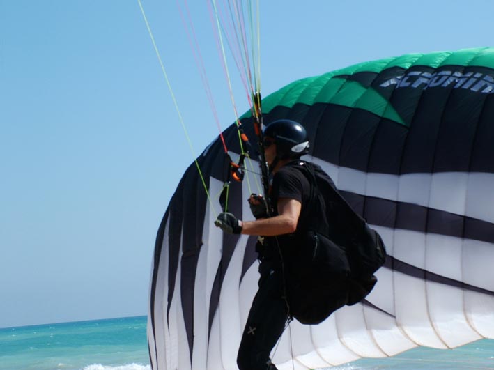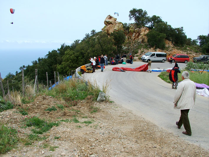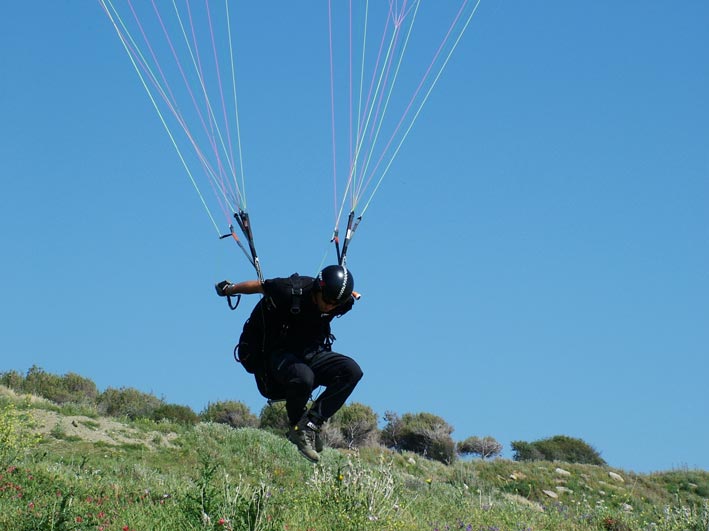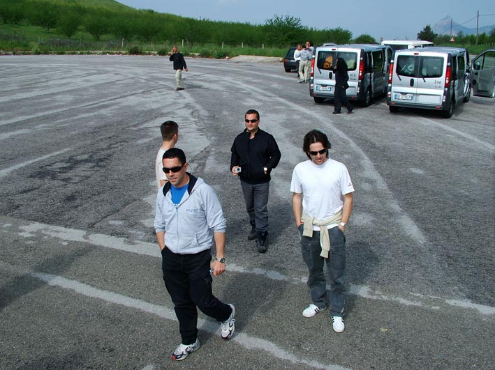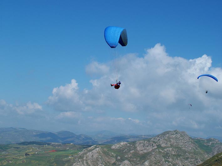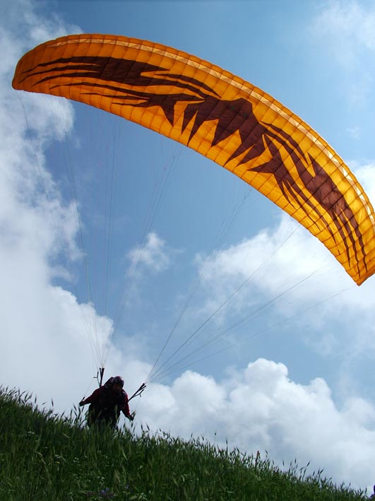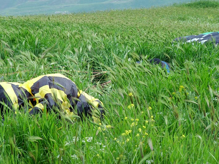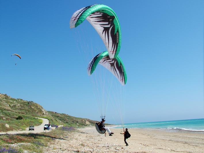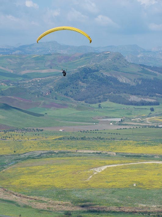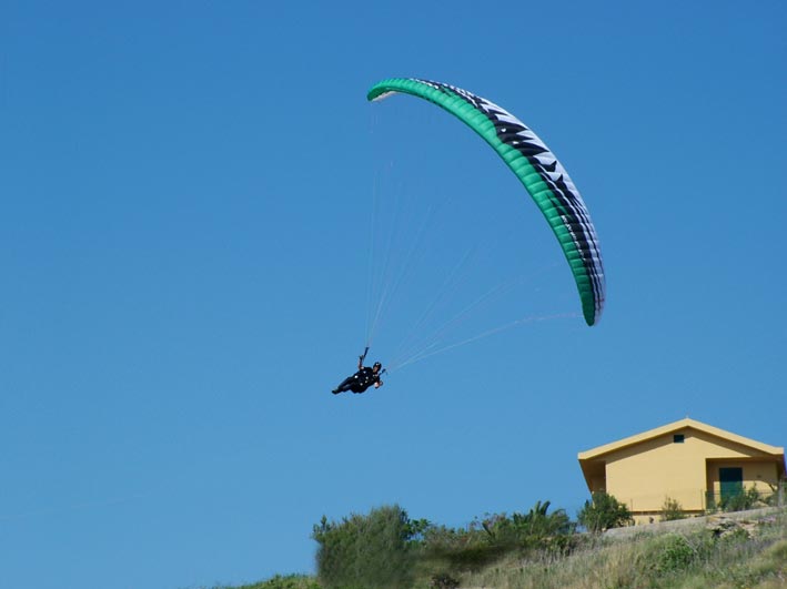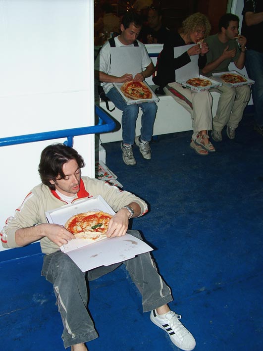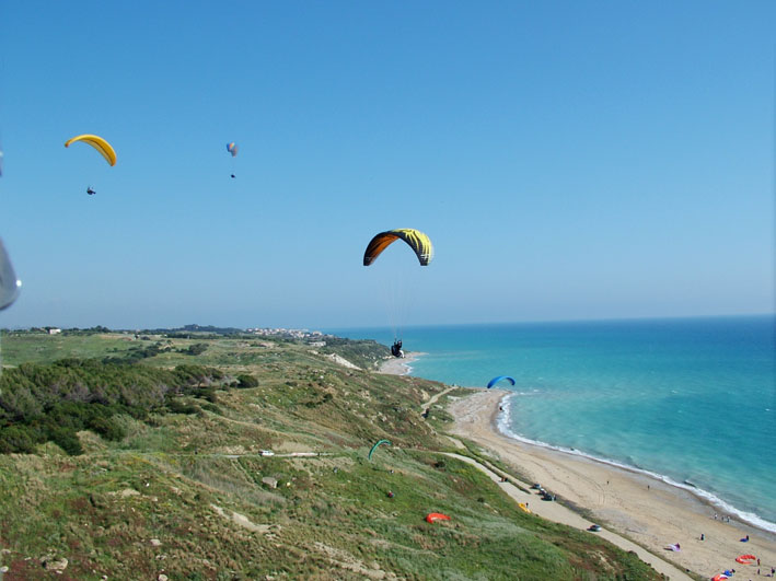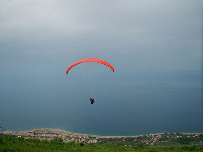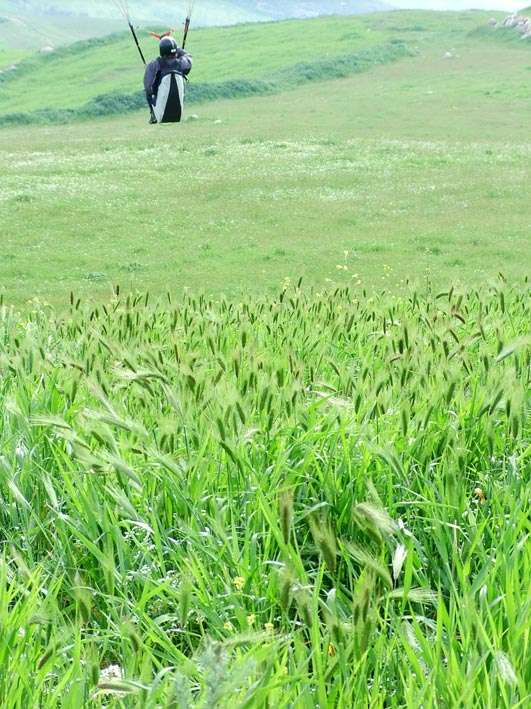 FLAITUR SICILIA 2007 - DIARIO DI BORDO "cannoli e cassoni... cordini e cazzoni" 18 05 2007 [è l'alba, arriva il traghetto] Finalmente ci siamo! Dopo mesi di attesa, organizzazione, aspettative, progetti, il giorno della partenza è arrivato. Appuntamento sotto scuola alle 13,30. A Voltzz diciamo le 13 chè sennò fa tardi..... Uno dopo l'altro arriviamo tutti, col sorriso a cinquantaTRE' denti stampato sulla faccia.... Dopo solo (!!!!) un'ora e mezza siamo già (!!!) in direzione Napoli. Ma non in autostrada...... Che sei matto? Noi cose normale mai! Ci facciamo la Flacca, stile processionarie, con una velocità degna del collega Bradipo. Questo perchè? Viene da chiedersi.... Semplice, il Nostro Vizioso Signore Maestro voleva una bufala.... ehmmm... la mozzarella intendo.... E quindi tappa obbligata a Mondragone... Insomma dopo solo (!!!) sei ore arriviamo a Napoli. Eppure mi ricordavo che erano 200 km... Devono essere aumentati a causa dell'inquinamento.... E una volta lì, una cosa stranissima: c'e' un traffico pazzesco! Mai vista una cosa simile! Il traffico a Napoli... Bah.... La nave e' bellissima e nuovissima! Le cabine, di prima classe, spaziose e comode... da veri signori... Se non fosse per la cena in pieno stile tribù di parapendio... Sì perchè mentre la maggior parte di noi sale sulla nave, due eroi, Iglù e Culatello, si scapicollano a comprare le pizze per tutti e riescono a convincere quel povero pizzaiolo a farne ventitrè in 15 minuti, chè sennò la nave parte senza di loro.... Il momento dell'arrivo sulla nave, con tutte quelle pizze, è clamoroso... Una partita di football americano... I due eroi si fanno largo a spallate tra la folla affamata-impazzita, pronti a difendere con la vita il tesoro conquistato...... Ci accampiamo sul ponte, al freddo e al gelo, tra i passanti impietositi, a mangiare con mani, piedi e chi più ne ha più ne metta, con l'olio gocciolante sui pantaloni e le macchie di pomodoro sulle magliette.... Vabbè tanto 'sta settimana nessuno ci farà caso alle patacche... Con lo stomaco pieno di pizza e mozzarella di bufala, satolli ed allegri, ce ne andiamo nelle cabine a goderci l'ultima notte in un vero letto. Sicilia, l'abbiamo detto tante volte, ma stavolta è vero, stiamo proprio arrivando! [la nave bellissima e le pizze buonissime] [sul ponte, subito dopo la partenza] 1° giorno - domenica 29 aprile Arriviamo a Palermo alle SEI del mattino!!!! Ma porca vacca, dico io, che fretta c'era? Non poteva andare più piano 'sta nave? Appuntamento a Mondello con i nostri amici Vincenzo e Francesca... Mondello..... Che incanto!!! Un gioiello sul mare in mezzo ad una distesa sconfinata di colline verdi..... Colazione abbondante, come è d'uso… Raggiungiamo il Nostro Signore Maestro Locale, il mitico Adriano Patti, e il Flaitur ha finalmente inizio. Ci dirigiamo verso Agrigento. Il primo decollo e' dal Monte Kumeta, 1200 mt slm: un pendio così pieno di fiori non l'avevo ancora visto... Che bello! Peccato per l'atterraggio..... Tutto fango!!! Ne usciamo con le scarpe talmente piene che pesano 3 kg l'una... Però arriva subito una bella ricompensa: i cannoli più buoni che abbia mai assaggiato in tutta la mia vita! Una vera delizia.... E, dopo questo carico di energia (hai voglia!), ci avviamo verso un nuovo sito di volo non distante: Serra della Moneta, 1150 mt slm. Maestro Adriano litiga un po' col vento, gli lancia qualche insulto tipico locale, e finalmente si decolla.... Sul pendio e' evidente che l'erba non la taglia nessuno... Praticamente durante il gonfiaggio ce l'hai nelle orecchie... E poi l'atteraggio.. E qui, se si avesse un briciolo di dignità, si stenderebbe un velo pietoso... A vederlo dall'alto sembra un infinito tappeto verde atterrabile... Se se... Alla fine l'unico punto atterrabile e' un campo di grano spiaccicato, come dopo l'atterraggio degli ufo, stretto, lungo e pieno di gobbe... Quali gobbe? Gobbe, gobbe. Peraltro la lunghezza a qualcuno non e' bastata... Vero Gino? La prima giornata fly e' finita: un successo! Grazie alle doti meteo di maestro Adriano siamo riusciti a beccare l'unica zona col sole di tutta l'Isola! E ora un'altra ricompensa: la luculliana cena che soddisfa anche i palati più esigenti. Infine il campo nomadi. Con molta velocità si montano le tende, si gonfiano i materassini, si aprono i sacchi a pelo... Si dorme. E si russa. La prossima notte ci vorrà un piano anti-russaggio. [mondello] [portella della ginestra, uomini e furgoni] [monte kumeta, ci si prepara] [monte kumeta, primo decollo siciliano] [monte kumeta, primo decollo ultimo] [monte kumeta, un nuovo alieno nel cielo] [serra della moneta vs ada] [serra della moneta vs gemello #1] [serra della moneta vs gemello #2] [serra della moneta vs gemello #3] [serra della moneta vs gemello #4] [serra della moneta vs gemelli, riproviamo #1] [serra della moneta vs gemelli, riproviamo #2] [serra della moneta vs ramazza] [serra della moneta vs santissimi] [serra della moneta vs atterraggio stile nimitz] 2° giorno - lunedì 30 aprile Neppure oggi si dorme... Qualcuno ha deciso che alle sette e' ora di alzarsi... Je possino! Tre quarti d'ora di curve per la colazione e si parte. Oggi il tempo e' sfavorevole, dobbiamo girare un po' per vedere se troviamo un posto dove si riesca volare. E così passiamo la mattina in giro per l'agrigentino alla ricerca disperata. Quà non c'è vento. Là c'è un cumulo. Là è troppo a rischio. Oggi sta vincendo lui, il tempo dispettoso. Allora per consolarci ci buttiamo in un supermercato a comprare di tutto di più e, idea meravigliosa, si mangia accampati selvaggiamente (capirai che novità....) su una bellissima spiaggia. Poi si riparte alla ricerca del decollo perduto..... E ancora una volta maestro Adriano vince: il posto lo troviamo, è il più bello di tutti quelli visti finora! Attraversiamo immensi prati e campi di grano.... Sembra quasi un posto irreale.... Passo Funnutu, 430 mt slm. Il decollo è molto gradevole, l'atter