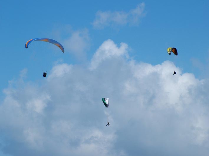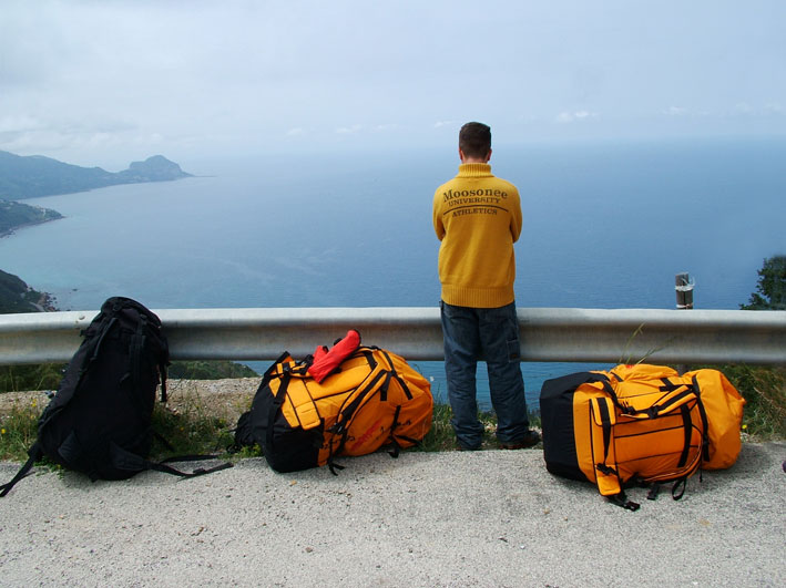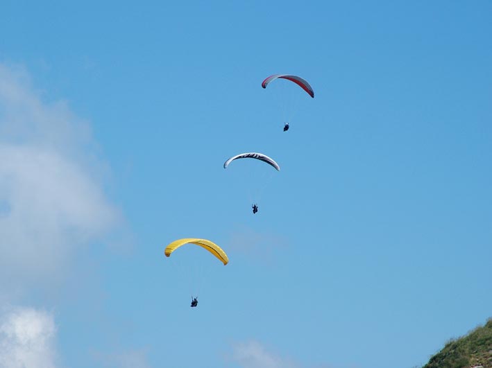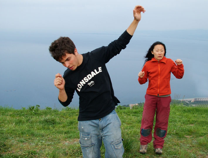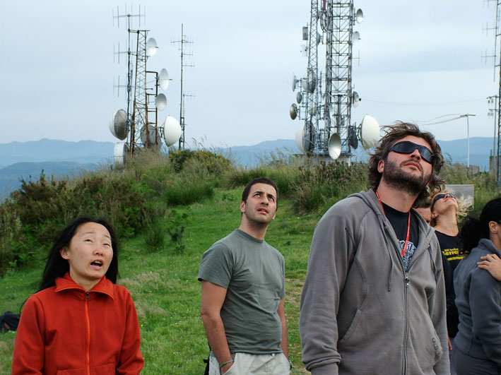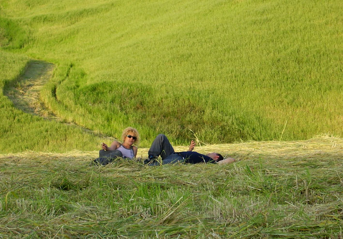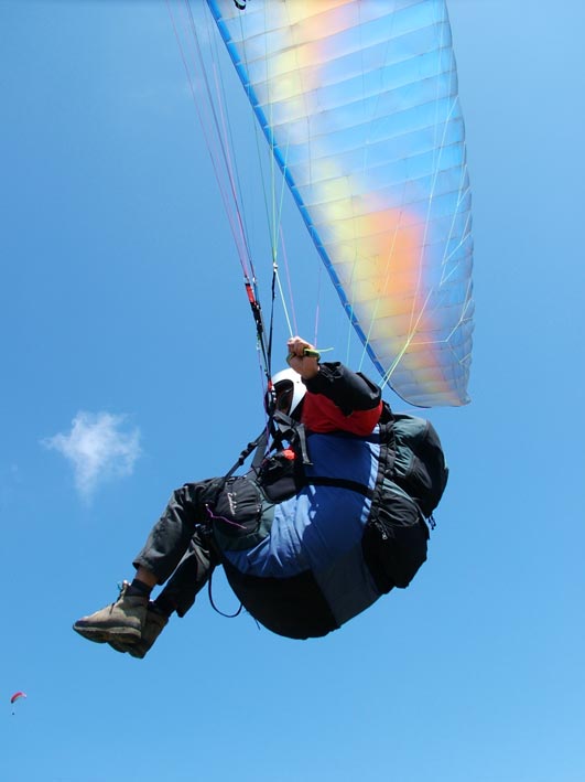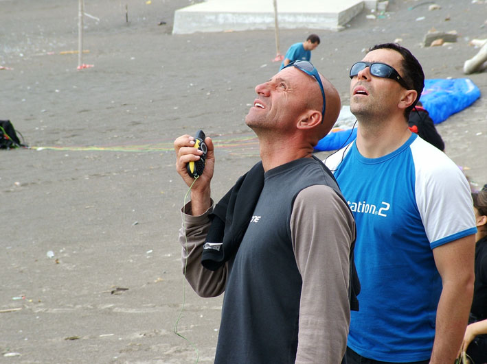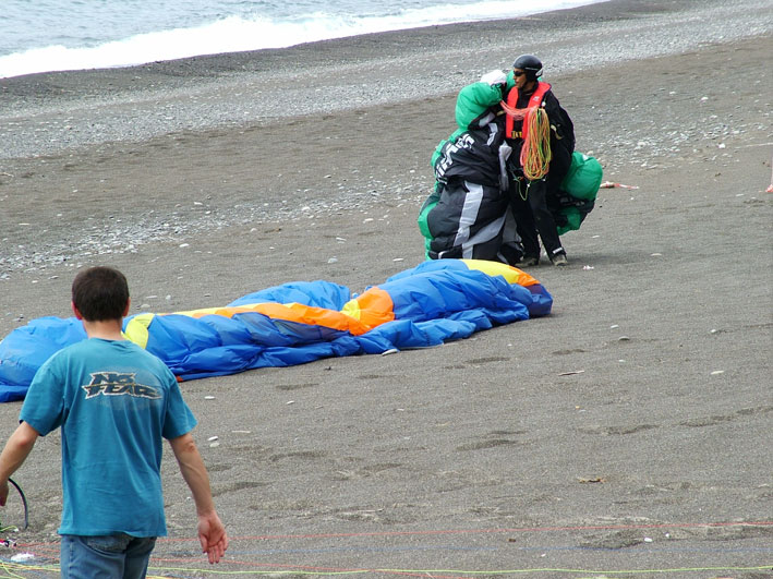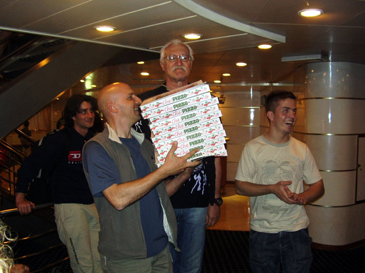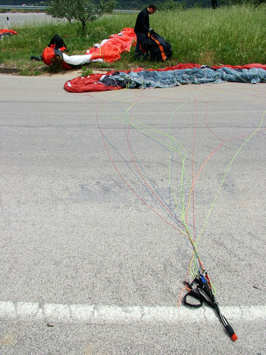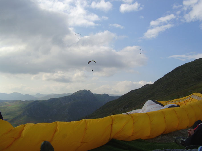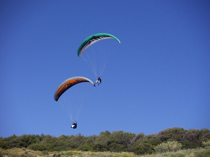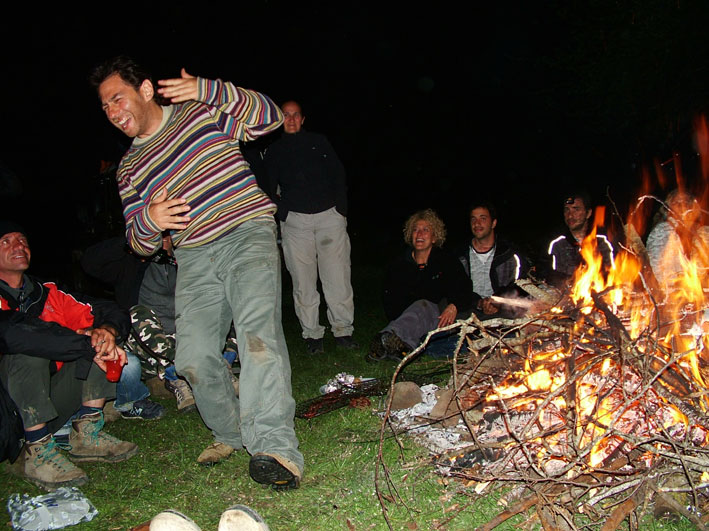 FLAITUR SICILIA 2007 - DIARIO DI BORDO "cannoli e cassoni... cordini e cazzoni" 18 05 2007 [è l'alba, arriva il traghetto] Finalmente ci siamo! Dopo mesi di attesa, organizzazione, aspettative, progetti, il giorno della partenza è arrivato. Appuntamento sotto scuola alle 13,30. A Voltzz diciamo le 13 chè sennò fa tardi..... Uno dopo l'altro arriviamo tutti, col sorriso a cinquantaTRE' denti stampato sulla faccia.... Dopo solo (!!!!) un'ora e mezza siamo già (!!!) in direzione Napoli. Ma non in autostrada...... Che sei matto? Noi cose normale mai! Ci facciamo la Flacca, stile processionarie, con una velocità degna del collega Bradipo. Questo perchè? Viene da chiedersi.... Semplice, il Nostro Vizioso Signore Maestro voleva una bufala.... ehmmm... la mozzarella intendo.... E quindi tappa obbligata a Mondragone... Insomma dopo solo (!!!) sei ore arriviamo a Napoli. Eppure mi ricordavo che erano 200 km... Devono essere aumentati a causa dell'inquinamento.... E una volta lì, una cosa stranissima: c'e' un traffico pazzesco! Mai vista una cosa simile! Il traffico a Napoli... Bah.... La nave e' bellissima e nuovissima! Le cabine, di prima classe, spaziose e comode... da veri signori... Se non fosse per la cena in pieno stile tribù di parapendio... Sì perchè mentre la maggior parte di noi sale sulla nave, due eroi, Iglù e Culatello, si scapicollano a comprare le pizze per tutti e riescono a convincere quel povero pizzaiolo a farne ventitrè in 15 minuti, chè sennò la nave parte senza di loro.... Il momento dell'arrivo sulla nave, con tutte quelle pizze, è clamoroso... Una partita di football americano... I due eroi si fanno largo a spallate tra la folla affamata-impazzita, pronti a difendere con la vita il tesoro conquistato...... Ci accampiamo sul ponte, al freddo e al gelo, tra i passanti impietositi, a mangiare con mani, piedi e chi più ne ha più ne metta, con l'olio gocciolante sui pantaloni e le macchie di pomodoro sulle magliette.... Vabbè tanto 'sta settimana nessuno ci farà caso alle patacche... Con lo stomaco pieno di pizza e mozzarella di bufala, satolli ed allegri, ce ne andiamo nelle cabine a goderci l'ultima notte in un vero letto. Sicilia, l'abbiamo detto tante volte, ma stavolta è vero, stiamo proprio arrivando! [la nave bellissima e le pizze buonissime] [sul ponte, subito dopo la partenza] 1° giorno - domenica 29 aprile Arriviamo a Palermo alle SEI del mattino!!!! Ma porca vacca, dico io, che fretta c'era? Non poteva andare più piano 'sta nave? Appuntamento a Mondello con i nostri amici Vincenzo e Francesca... Mondello..... Che incanto!!! Un gioiello sul mare in mezzo ad una distesa sconfinata di colline verdi..... Colazione abbondante, come è d'uso… Raggiungiamo il Nostro Signore Maestro Locale, il mitico Adriano Patti, e il Flaitur ha finalmente inizio. Ci dirigiamo verso Agrigento. Il primo decollo e' dal Monte Kumeta, 1200 mt slm: un pendio così pieno di fiori non l'avevo ancora visto... Che bello! Peccato per l'atterraggio..... Tutto fango!!! Ne usciamo con le scarpe talmente piene che pesano 3 kg l'una... Però arriva subito una bella ricompensa: i cannoli più buoni che abbia mai assaggiato in tutta la mia vita! Una vera delizia.... E, dopo questo carico di energia (hai voglia!), ci avviamo verso un nuovo sito di volo non distante: Serra della Moneta, 1150 mt slm. Maestro Adriano litiga un po' col vento, gli lancia qualche insulto tipico locale, e finalmente si decolla.... Sul pendio e' evidente che l'erba non la taglia nessuno... Praticamente durante il gonfiaggio ce l'hai nelle orecchie... E poi l'atteraggio.. E qui, se si avesse un briciolo di dignità, si stenderebbe un velo pietoso... A vederlo dall'alto sembra un infinito tappeto verde atterrabile... Se se... Alla fine l'unico punto atterrabile e' un campo di grano spiaccicato, come dopo l'atterraggio degli ufo, stretto, lungo e pieno di gobbe... Quali gobbe? Gobbe, gobbe. Peraltro la lunghezza a qualcuno non e' bastata... Vero Gino? La prima giornata fly e' finita: un successo! Grazie alle doti meteo di maestro Adriano siamo riusciti a beccare l'unica zona col sole di tutta l'Isola! E ora un'altra ricompensa: la luculliana cena che soddisfa anche i palati più esigenti. Infine il campo nomadi. Con molta velocità si montano le tende, si gonfiano i materassini, si aprono i sacchi a pelo... Si dorme. E si russa. La prossima notte ci vorrà un piano anti-russaggio. [mondello] [portella della ginestra, uomini e furgoni] [monte kumeta, ci si prepara] [monte kumeta, primo decollo siciliano] [monte kumeta, primo decollo ultimo] [monte kumeta, un nuovo alieno nel cielo] [serra della moneta vs ada] [serra della moneta vs gemello #1] [serra della moneta vs gemello #2] [serra della moneta vs gemello #3] [serra della moneta vs gemello #4] [serra della moneta vs gemelli, riproviamo #1] [serra della moneta vs gemelli, riproviamo #2] [serra della moneta vs ramazza] [serra della moneta vs santissimi] [serra della moneta vs atterraggio stile nimitz] 2° giorno - lunedì 30 aprile Neppure oggi si dorme... Qualcuno ha deciso che alle sette e' ora di alzarsi... Je possino! Tre quarti d'ora di curve per la colazione e si parte. Oggi il tempo e' sfavorevole, dobbiamo girare un po' per vedere se troviamo un posto dove si riesca volare. E così passiamo la mattina in giro per l'agrigentino alla ricerca disperata. Quà non c'è vento. Là c'è un cumulo. Là è troppo a rischio. Oggi sta vincendo lui, il tempo dispettoso. Allora per consolarci ci buttiamo in un supermercato a comprare di tutto di più e, idea meravigliosa, si mangia accampati selvaggiamente (capirai che novità....) su una bellissima spiaggia. Poi si riparte alla ricerca del decollo perduto..... E ancora una volta maestro Adriano vince: il posto lo troviamo, è il più bello di tutti quelli visti finora! Attraversiamo immensi prati e campi di grano.... Sembra quasi un posto irreale.... Passo Funnutu, 430 mt slm. Il decollo è molto gradevole, l'atter
