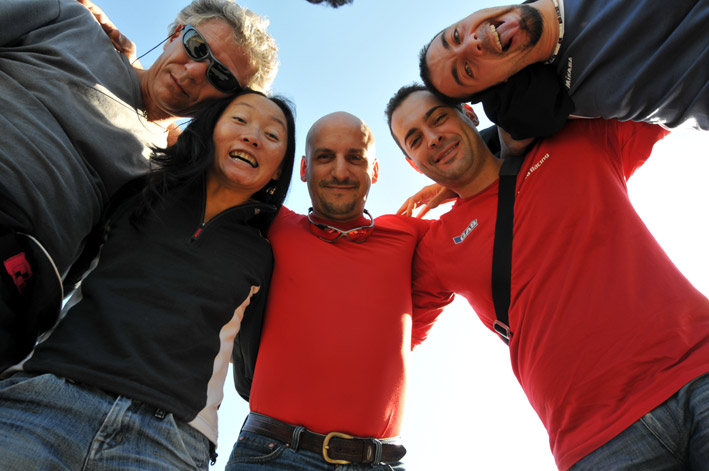 Ghianda SIV #1 aggiornato il 12 01 2009 [il menų...] ![]() [...e la carta dei vini] Ansia e Paura Sono le emozioni che hanno caratterizzato l'inizio del viaggio. Ansia e Paura perché, per svariati motivi, siamo "ripartiti" tre volte prima di partire sul serio. Ansia e Paura per la Salerno - Reggio che pare la striscia di Gaza. Ansia e Paura (e anche un po' di panico) per la guida dell'amico Antenna. E poi finalmente siamo arrivati. Vivi. Dopo sette fantozziane ore di viaggio. Mercoledė voli d'ambientamento a Praia Per abbassare il livello di tensione - e ci volevano proprio - fino all'arrivo del "pezzo forte"... E cosi, nel tardo pomeriggio, arrivano Ramazza e Scanner con il pezzo forte: Gudrun, accompagnata da uno Spilungone Bolzanino dall'andatura dinoccolata (!?), che risponde al nome di Michael. Anche loro decollano per il volo d'ambientamento e il Bolzanino, che vola una vela esotica - la Chiquita o qualcosa del genere - esce e si spara una raffica di figure acro che poco hanno a che fare con quello che noi chiamiamo volo da diporto! Hai capito il Bolzanino!! Ma lo stupore vero l'ho provato nel confronto tra il primo e l'ultimo giorno di SIV: si č passati dall'eseguire mini-chiusure asimmetriche che: "neanche la nonna di Michael le fa cosi piccole", a stalli da capelli bianchi, a chiusure da trč cassoni aperti, a wingover cappottati (l'autore del pezzo č romano n.d.r.), a spirali asimmetriche, e - incredibile ma vero - alle SAT; ma di questa forse č meglio che non scriva perché ancora "me sento un friccico ner core" (l'autore del pezzo č romano n.d.r.). Č impressionante ed inimmaginabile Č impressionante ed inimmaginabile capire come reagisce la vela a certe sollecitazioni. Č impressionante ed inimmaginabile rendersi conto di come qualcuno possa sentirsi "Pilota" senza aver partecipato ad ALMENO un SIV. Č impressionante ed inimmaginabile pensare che non sia obbligatorio inserire nell'esame per l'attestato la verifica della gestione delle chiusure (con relativa integrazione del corso). Ma soprattutto č impressionante ed inimmaginabile stare in decollo con il Bradipo in "modalitā SIV": nun ce se crede, č n'artro!!! (l'autore del pezzo č romano n.d.r.). Scanner, invece, č sempre lo stesso, laddove le aspettative erano che "bucasse il volo", ha capito male e ha "bucato la vela" (la dura vita del papā-pilota-ingegnere-metropolitano). Per il resto tutte le emozioni vissute difficilmente si possono descrivere, per non parlare delle baggianate (?) fatte, con le quali ci siamo massacrati dalle risate. Ultimi ma non ultimi i cori da stadio - tormentone di questi SIV - che ci hanno lasciato senza fiato e senza voce... e giusto per chiudere in bellezza, beccateve l'ultimo coretto: Mānnace i video! Michele mānnace i video! Mānnaceee i viiiideooooo!! Michele mānnace i viiiideooooo!!! (l'autore del pezzo č romano n.d.r.). P.S. come la vedete se allaghiamo La Forma e i SIV li facciamo a Serrone? Fatemi sapere