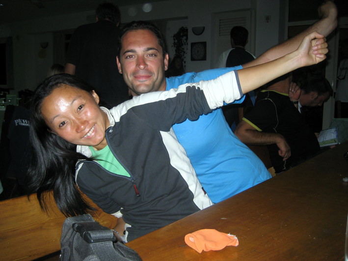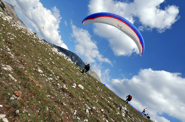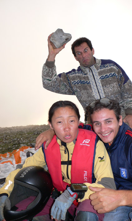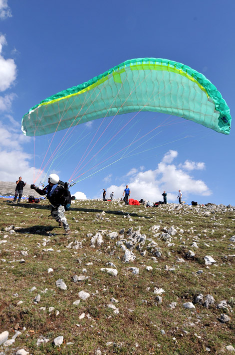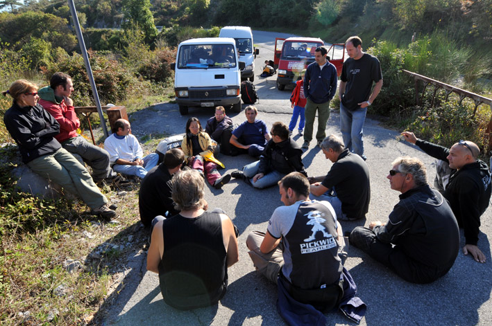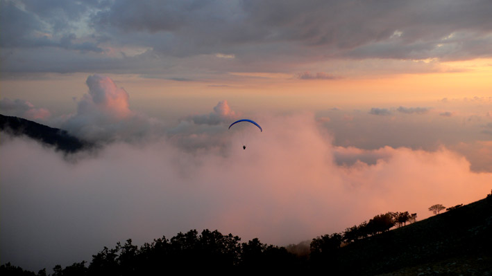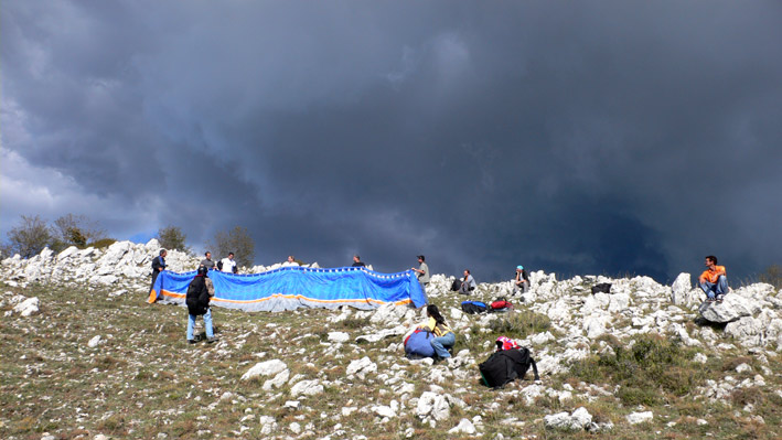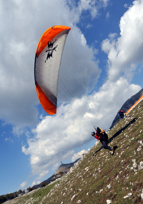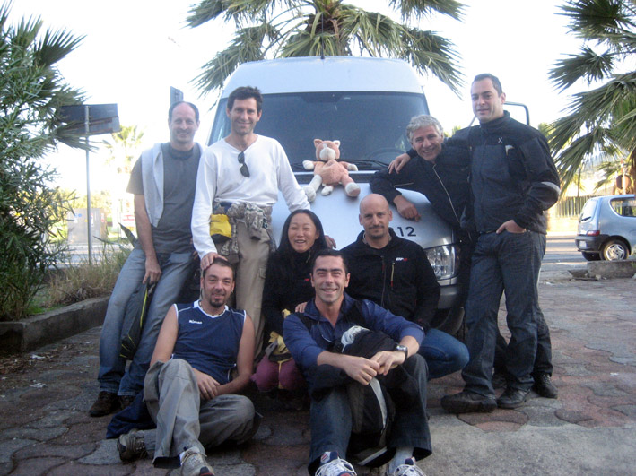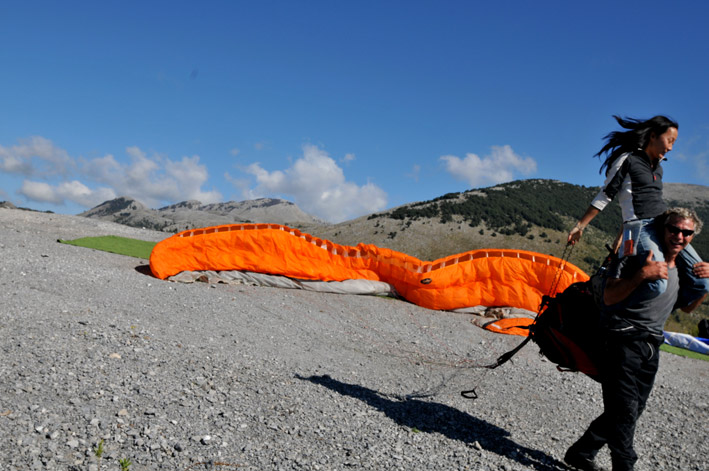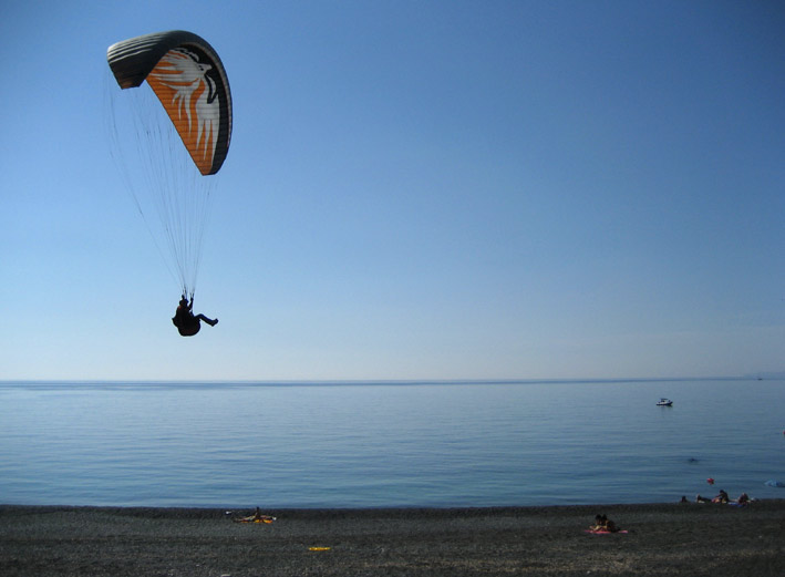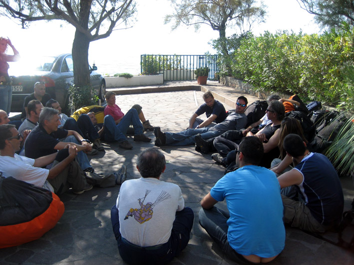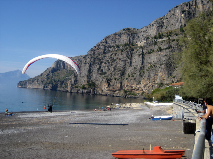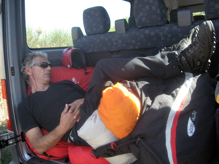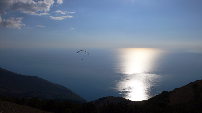 Ghianda SIV #2 aggiornato il 26 01 2009 [briefing sulla strada per il decollo] Mannaggia mannaggia il siv di nesler (o nestlè)… Ti si ficca in testa e non se ne vuole più andar via: "giiiira a destraaaaa, antennaaaa giiiira a destraaaaa, giiiiiiiira a deeeestraaaaaaaaa, antennaaaaa giiiiiraaaaa a deeestraaaaa…" clicckete, clicckete, ahiaaa, clicckete… Partecipanti da roma: nostro signore ghianda, ghiandenna, ghiandato muso giallo, bradighianda, ghiandatello, ghiandaccia, ghiangelo, ghiandazza, poi come accompagnatore non partecipante sghiander e ospite d'onore sul parabrezza del furgone l'orsetto ghianda. Tutto un siv all'insegna della ghianda dunque (per delucidazioni in merito chiedere a bradighianda quando non è in modalità siv). Completavano il gruppo: flavio, +1, tommacqua, benedetto, er pasticca, angela, tullio e l'ormai famoso trio siculo. Luogo: Maratea. Mare, sole, caldo, estate + parapendio, gommone, istruttore trentino, giubbottini = SIV. Evvai con i decolli difficili sui sassi (scanneeeeeeeer?), le chiusure asimmetriche con e senza i freni, gli stalli di b, le frontali con e senza speed, le spirali, le grandi orecchie, i wing over e per i più coraggiosi e capaci: le spirali asimmetriche, gli stalli, i negativi e le sat… Tutti eseguivano i comandi e le configurazioni richieste in base al proprio livello di esperienza e di pilotaggio; ognuno iniziava il siv il primo giorno impaurito e preoccupato di strapazzare la vela che aveva sopra la testa, ma finiva - l'ultimo giorno - con una tranquillità e una facilità di esecuzione delle manovre che sorprendeva tutti, lo stesso pilota in primo luogo. All'inizio conigli e alla fine leoni! E con solo tre giorni di voli sull'acqua!!! Da non credere: sembrava di assistere alla trasformazione della crisalide in farfalla, una bella farfalla colorata in mezzo al cielo sopra il mare, conscia del proprio mezzo e delle proprie capacità volatorie. Molto bello davvero. Per la cronaca, la sottoscritta dopo aver ripassato stalli e negativi è riuscita a far la sat, anzi dopo le prime esecuzioni radiocomandate da nesler, è riuscita a farne ben due senza nessun aiuto, nonostante la previsione condita da poca fiducia del trentino di finire in negativo e forse in acqua, trentinooooo tiè…… scherzo, se non ci fosse stato lui non starei qui a scrivere e a raccontare di splendide e faticose giornate in aria a cercar di capire più a fondo quel pezzo di tessuto che ci porta su nel cielo, a divertirci e ad aspirare di migliorare sempre più. Grazie michael… Ah dimenticavo: MANDACI I VIDEOOOO, MICHELE MANDACI I VIDEOOOO, MANDAAAACIIII I VIIIIIIDEOOOOOO, MICHELE MANDACI I VIIIIIDEOOOOO… (e pure la mia sellettaaaaaaa).