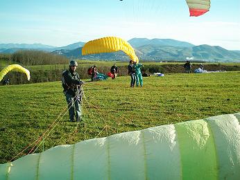 giornata di campetto dopo settimane di brutto tempo. [alessio] Location: centrale. Condizioni: sole splendente, temperatura 14 gradi, vento da est 15/25 km/h.... tutto il necessario per divertirsi quindi! Forse anche un pò di più.... [igloo] [cico, mm, catastrofe] [costola] Loredana "Indi", probabilmente "dopata" da glucidi e lipidi natalizi, infilava una serie semiperfetta di gonfiaggi e stacchetti... boh? [indi] Franco seguiva il pollo nuovo mentre Tragedy, come nelle migliori tradizioni, arrivava al tramonto dopo aver parcheggiato la macchina in una pozza di fango (insieme ad una Opel Frontera). [Franco e pollo nuovo] Cena da Antonella. [arriveduar] |