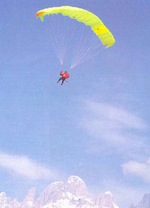 Eccoci di nuovo all'ormai consueto appuntamento mensile con il mondo del parapendio. Da questo numero inizieremo la pubblicazione di una serie di test sulle ali più conosciute presenti sul mercato nazionale, per farvi conoscere pregi e difetti di questo tanto discusso ma non abbastanza conosciuto parapendio. Le prove si baseranno su alcuni punti: - estetica - trasporto - gonfiaggio - decollo - volo - atterraggio - ripiegamento. Inizieremo per diritto di cronaca (perdonatemi l'espressione) con la ditta campione del mondo, la "Ailes de K", anche perchè quest'anno ha presentato una novità destinata a cambiare l'aspetto del parapendio negli anni a venire. Genair, ovvero l'uovo di Colombo Fin dai suoi esordi, il parapendio ha manifestato il suo comportamento scorbutico durante il volo in turbolenza. Coloro che hanno incontrato una termica o un vortice abbastanza robusto si sono accorti che il loro paracadute, chi più chi meno, tendeva a chiudere i cassoni laterali o addirittura a piegare all'interno le estremità; effetto che risulta ancor più esagerato se il pilota è sottopeso rispetto alla superficie alare. Questo inconveniente è causato principalmente dalla perdita di compressione interna dovuta ad angoli di incidenza negativi (discendenze forti o raffiche laterali). Per ovviare a questo problema, bisognava creare un paracadute che, una volta gonfio, mantenesse la pressione interna indipendentemente dall'angolo di incidenza. Il signor Kalbermatten e C. ci hanno pensato per primi ed hanno messo a punto un paracadute con valvole di ritegno e cassoni chiusi. Ma veniamo alla prova. Estetica La Genair, come le altre ali di K, viene fornita sprovvista di sacca e seggiolino, all'acquirente dunque di scegliere ciò che preferisce tra le numerose in commercio; quella prestataci assieme al paracadute per la prova, era una Sup'Air con relativo zainetto, ditta che è sicuramente "l'Armani" dei seggiolini da parapendio. La sacca, in nylon molto pesante, è garantita impermeabile, ha gli spallacci regolabili, le asole per infilare i pollici, la cinghietta girovita e, sul lato schiena, una tasca interna per inserire un'imbottitura o uno schienale rigido nel caso dobbiate camminare a lungo per raggiungere il decollo. Comodità di trasporto garantita, dunque, grazie anche al peso ridotto che è di soli 6,5 kg. (Peso sulla bilancia: solo ala kg 4,8; solo seggiolino kg 1,5; solo sacca kg 0,2.) Le vele sono per lo più in colori fluorescenti abbinati al bianco, l'accostamento delle tinte è gradevole e sicuramente non lasciato al caso, del resto la ditta costruttrice è la Air Gautier con circa 100 dipendenti, già rinomatissima veleria per barche (è una delle più grandi e vecchie della Svizzera), ed attualmente impegnata principalmente nella costruzione delle vele di mister K (quasi 100 la settimana). Il tessuto (costruito appositamente) è nylon C.C.39 intramato tipo "Ripstop", del peso di 39 gr. per metro quadro. Anche se tutte le vele di K hanno il Gutesiegel, qualcuno aveva sollevato dei dubbi sulla resistenza agli U.V. delle vele fluò, e ciò ha spinto il costruttore a sottoporre a collaudo un paracadute usato in campo scuola per più di 1 anno; ebbene, ha resistito ad un carico di 6 G. Dubbi infondati dunque, ma vi consiglio di non lasciare per troppo tempo le vele aperte al sole; la raccomandazione è riportata in tre lingue anche sulle targhette di caratteristica, cucite alle centine esterne di tutte le Ali di K. La Genair 510 ha 10 cassoni (5 chiusi e 5 aperti) e misura 23.5 mq. reali (corrispondenti a quelli dichiarati). ![]() È consigliata a piloti con peso superiore ai 65-70 kg; per quelli più leggeri c'è a disposizione una misura più piccola, forse un poco più efficiente ma con un tasso di caduta leggermente superiore (chiaramente a parità di carico alare). Il fascio funicolare è composto dall'ormai stracontrollato cordino di kevlar da un millimetro, rincalzato con polipropilene prestirato, che ha un carico di rottura intorno ai 100 kg. Le bretelle sono in nylon ad alta tenacità di cm 3 di larghezza, dotate di serie di un esclusivo sistema di trim variabile. ![]() Tutta l'ala ed il sistema di trimaggio sono coperti da brevetto internazionale. Gonfiaggio Grazie alla leggerezza del tessuto ed alle bocche centrali molto grandi, l'ala sale dolcemente anche in assenza di vento e dà al pilota tutto il tempo di controllare la corretta apertura prima del decollo: le bocche chiuse non sono un ostacolo, e le estremità si gonfiano altrettanto rapidamente. Decollo Nei 18 voli di prova che ho effettuato personalmente, non ho mai dovuto fare più di quattro passi (peso kg 80), l'accelerazione della rincorsa è uniforme e precisa (grazie ai trim) e, anche se capita di correre poco e frenare molto, ti "porta via" senza grossi problemi. Volo In volo, la Genair grazie ai cassoni pressurizzati, infonde sicurezza, si muove ben poco e, anche nelle turbolenze discrete, il movimento a "fisarmonica" è veramente ridotto. La gamma di velocità va da una minima di 22 km/h (p2 m/sec) ad una massima di 40 km/h (-4 m/sec). Utilizzando soltanto i freni (senza i trim) la velocità massima si riduce a 30/32 km/h (-3 m/sec), e quella minima rimane pressochè inalterata. II profilo del Genair: alle estremità alari si notano i cassoni chiusi. I "trim" (non bloccabili) consentono di cambiare in volo l'angolo d'incidenza. Lo stallo viene raggiunto azionando i freni oltre il 65% tuttavia, per stallarla completatamente, bisogna tirare con una certa decisione oltre l'80%; non sono mai riuscito a farla collassare: la Genair rallenta, stalla, ma una volta rilasciati i freni, salta decisamente in avanti e dopo due scampanate riprende l'assetto di volo normale. La maneggevolezza è discreta, ed anche se la rigidità del profilo indurisce un pochino i comandi, spostandosi con il seggiolino è possibile girare anche le termiche più piccole. Tuttavia un appunto negativo lo devo fare: in caso di condizioni deboli, dovend